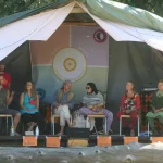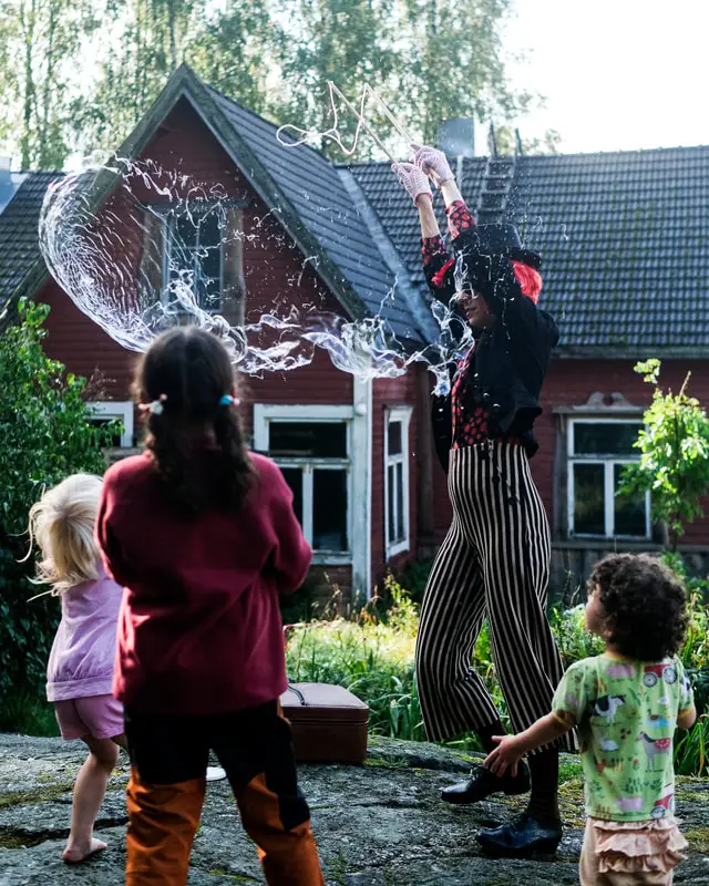 Pienen empimisen jälkeen lapsi vilahtikin muiden lapsukaisten joukkoon. Oli hauska nähdä, kuinka nopeasti alkujännityksestä loikattiin sujuviin seikkailuihin. Ekokylän ja laajemman yhteisön huolehtivien aikuisten katseen alla oli helppo luottaa, että lapset kyllä pärjäisivät ja tarvitessaan saisivat apua. Olin ollut hieman huolissani, kuinka lapsi viihtyisi niinä hetkinä, kun itse olin luvannut pitää työpajoja – tai haluaisin niitä kuunnella. Se huoli suli nopeasti: villiintynyt lapsi löysi iltaisin telttaan nukkumaan äidin viereen ja suostui siihen, että söimme aina yhdessä, Muuten hän viihtyikin ihanilla retkillään – ja äiti sai nauttia festareiden huikeasta ohjelmatarjonnasta mielenrauhassa tietäen, että myös lapsella oli hauskaa omissa touhuissaan.