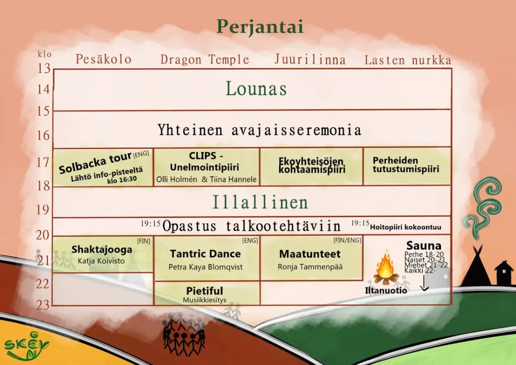 Suuret kiitokset Yhteisöllisyyden Festivaaliin 1.9 – 3.9.23 osallistujille!! Yhteisöllisyyden Festivaali 2023 järjestettiin Solbackan ekokylässä.